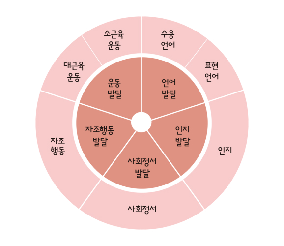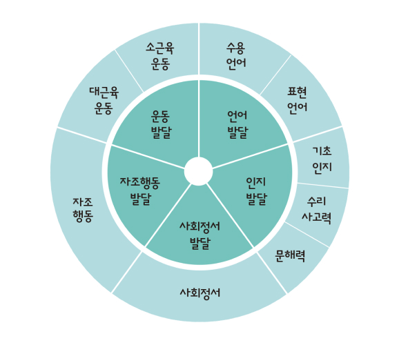 운동, 언어, 인지, 사회정서, 자조행동