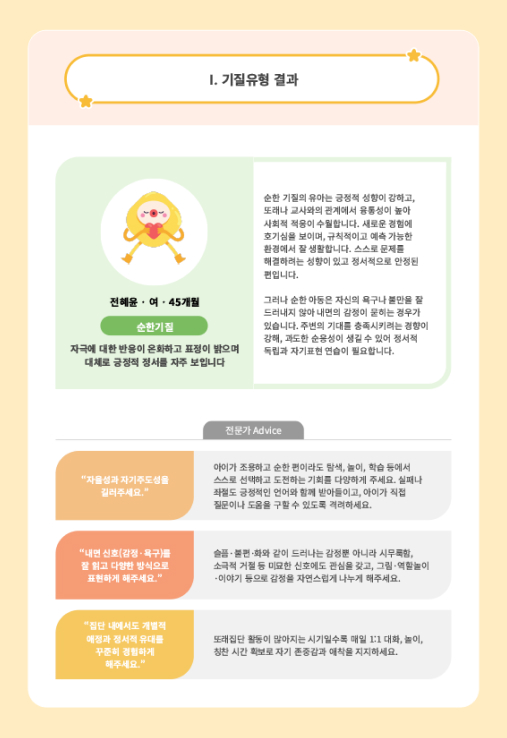 영유아의 타고난 기질 분류 대표 4가지를 (순한기질, 까다로운기질, 더디고 느린 기질, 복합기질)을 추가하여 유형별 정서 행동적 특성과 양육가이드를 제공합니다.