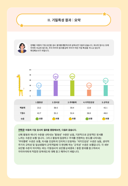 기존 기질검사의 신뢰도와 타당도를 한층 보완하여, 더 정확하고 실용적인 해석을 제공합니다.